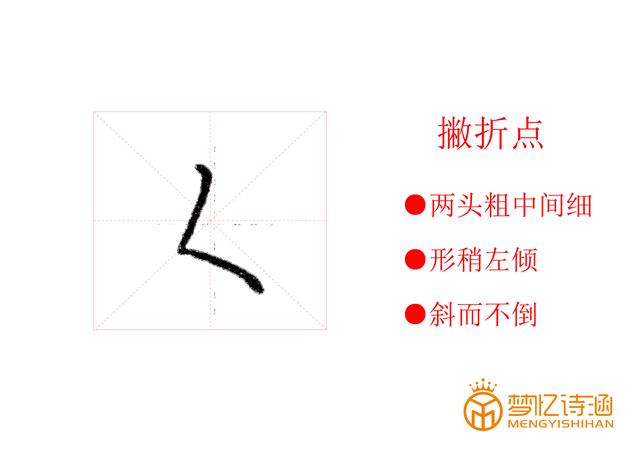 楷书笔画中撇折,横撇及斜折的写法及运笔,