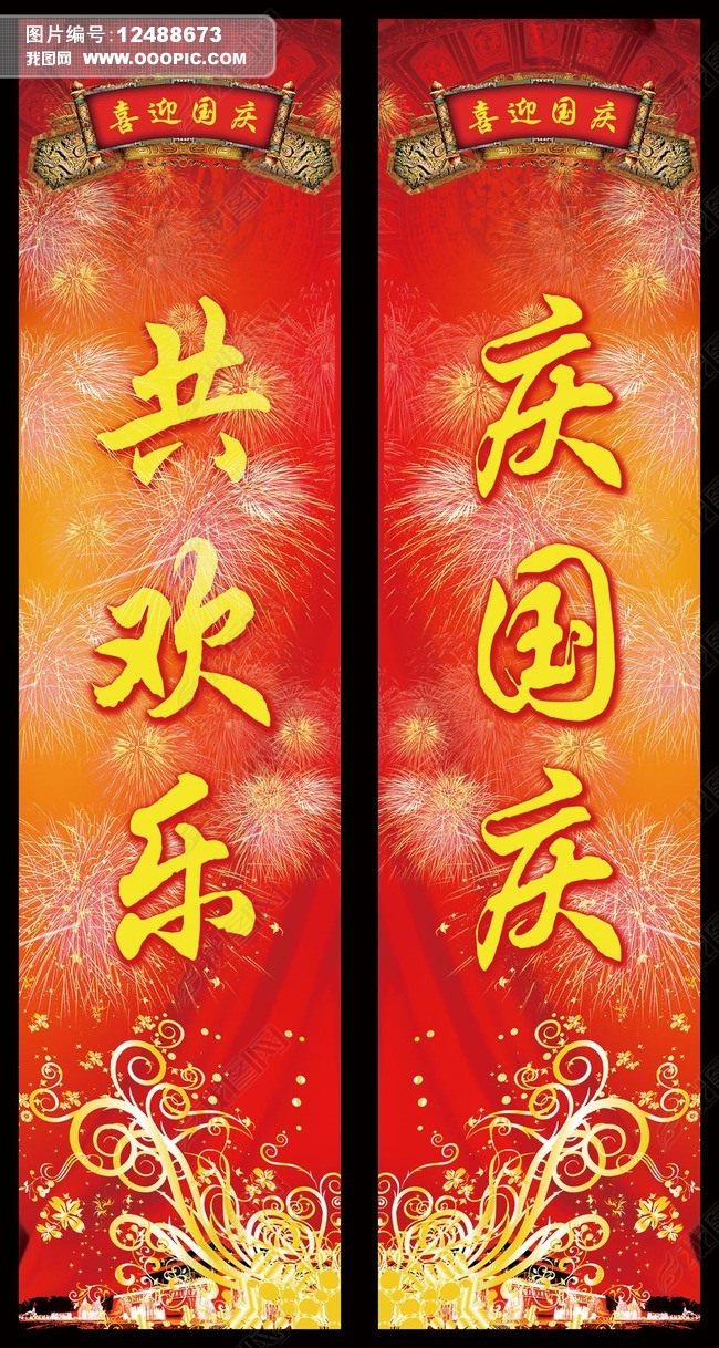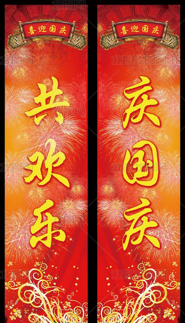 国庆节对联包柱海报展板KT板PSD图片素材下载