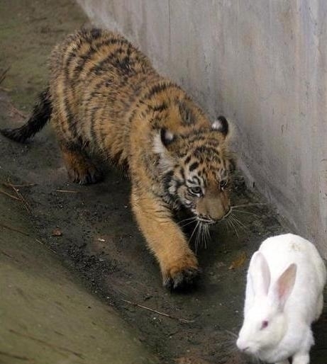 饲养员把兔子扔给小老虎吃,第二天再见时