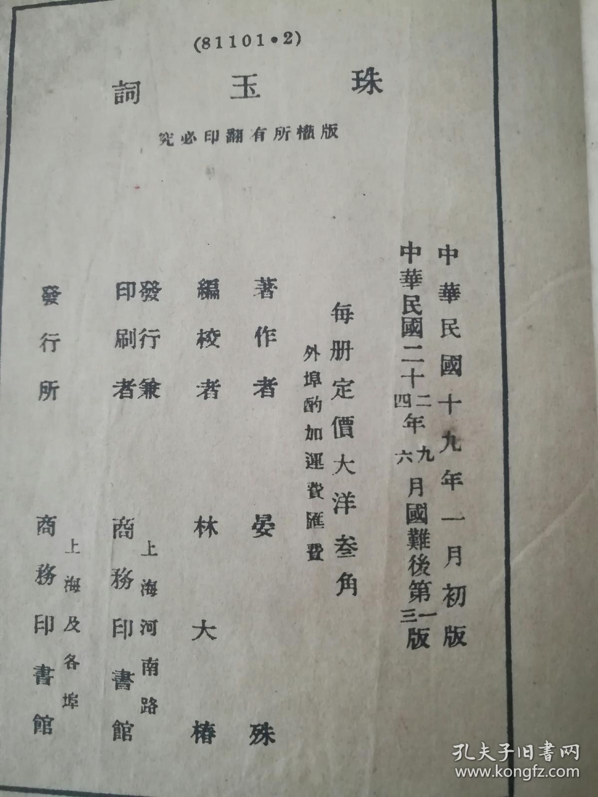 原函低价 《珠玉词》 北宋晏殊作 1997年