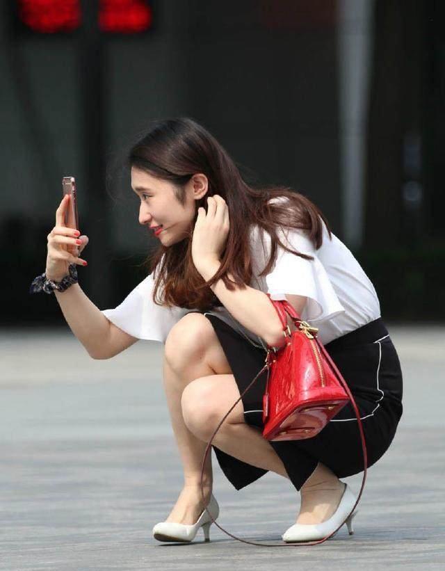 路人街拍,穿着包臀裙的年轻时尚辣妈,左手还拿着哈根达斯