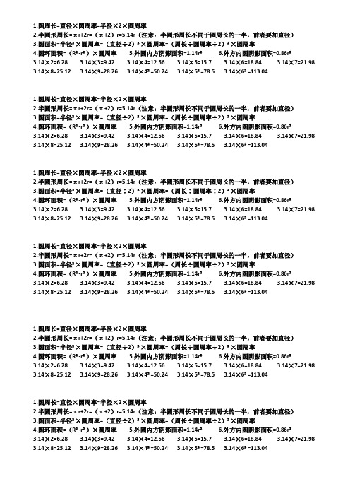 圆,半圆形,圆环形周长面积计算公式,用字母
