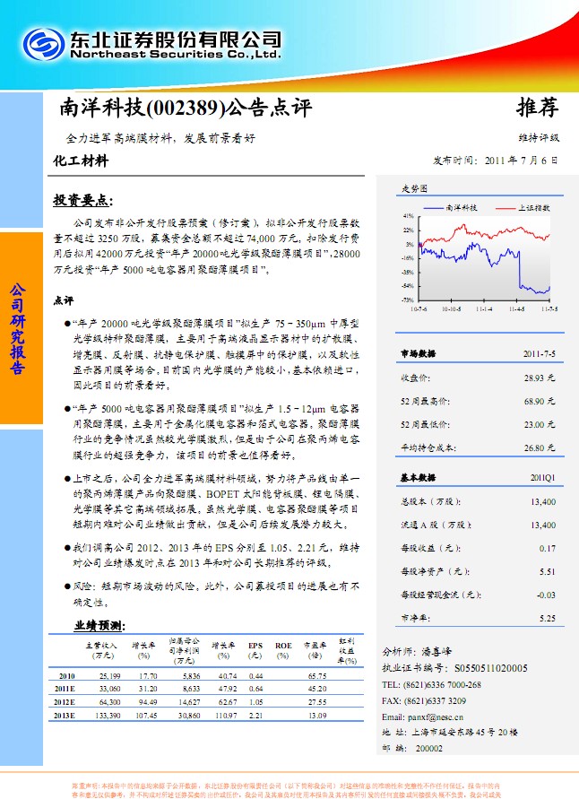 南洋科技-002389-非公开发行预案点评: