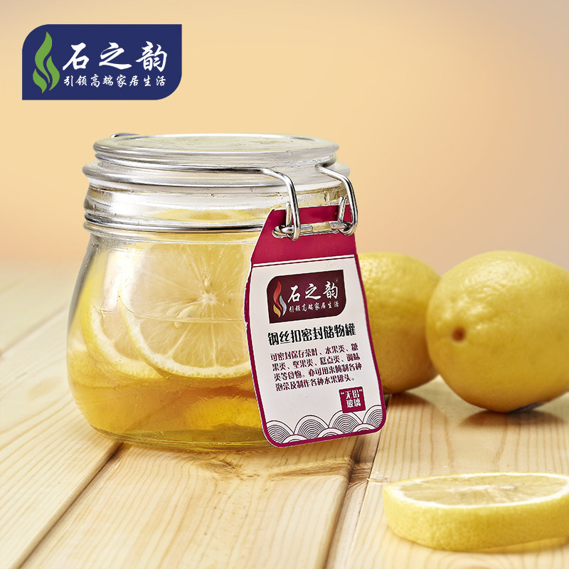 无铅玻璃密封罐储物罐泡酒广口瓶柠檬500