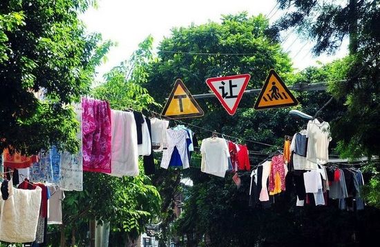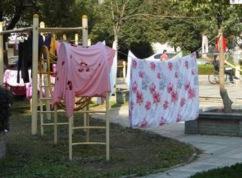 电线上床单飘飘内裤飞扬 中国式晾晒很