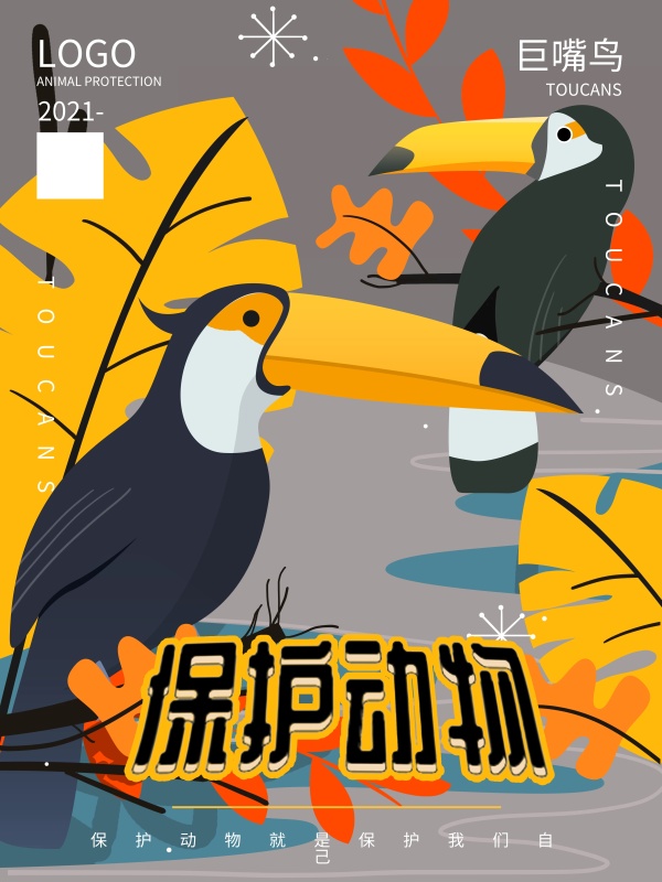 保护动物公益海报巨嘴鸟唯美浪漫插画