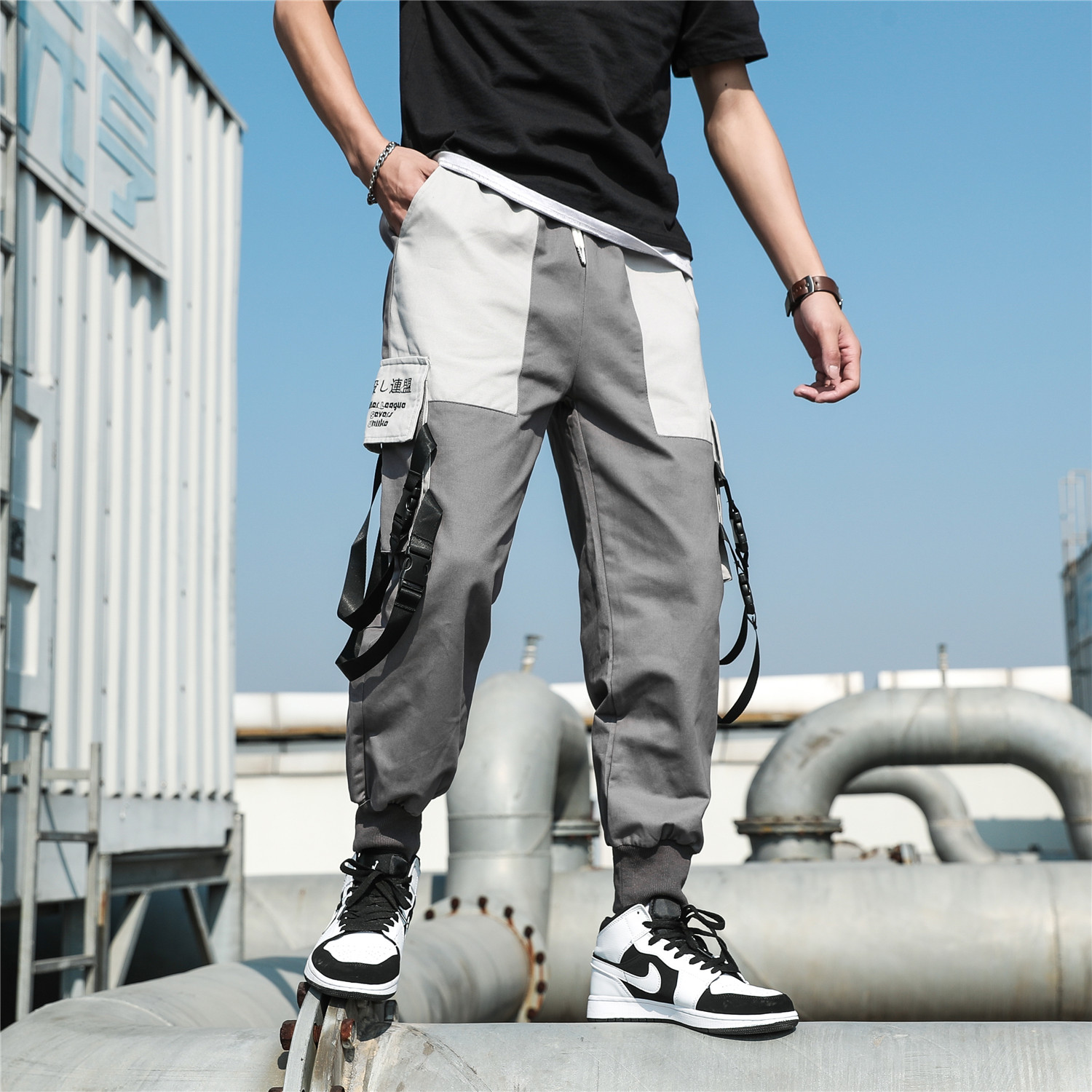 日系简约忍者裤 大口袋束脚工装裤纯棉休闲裤男潮新品