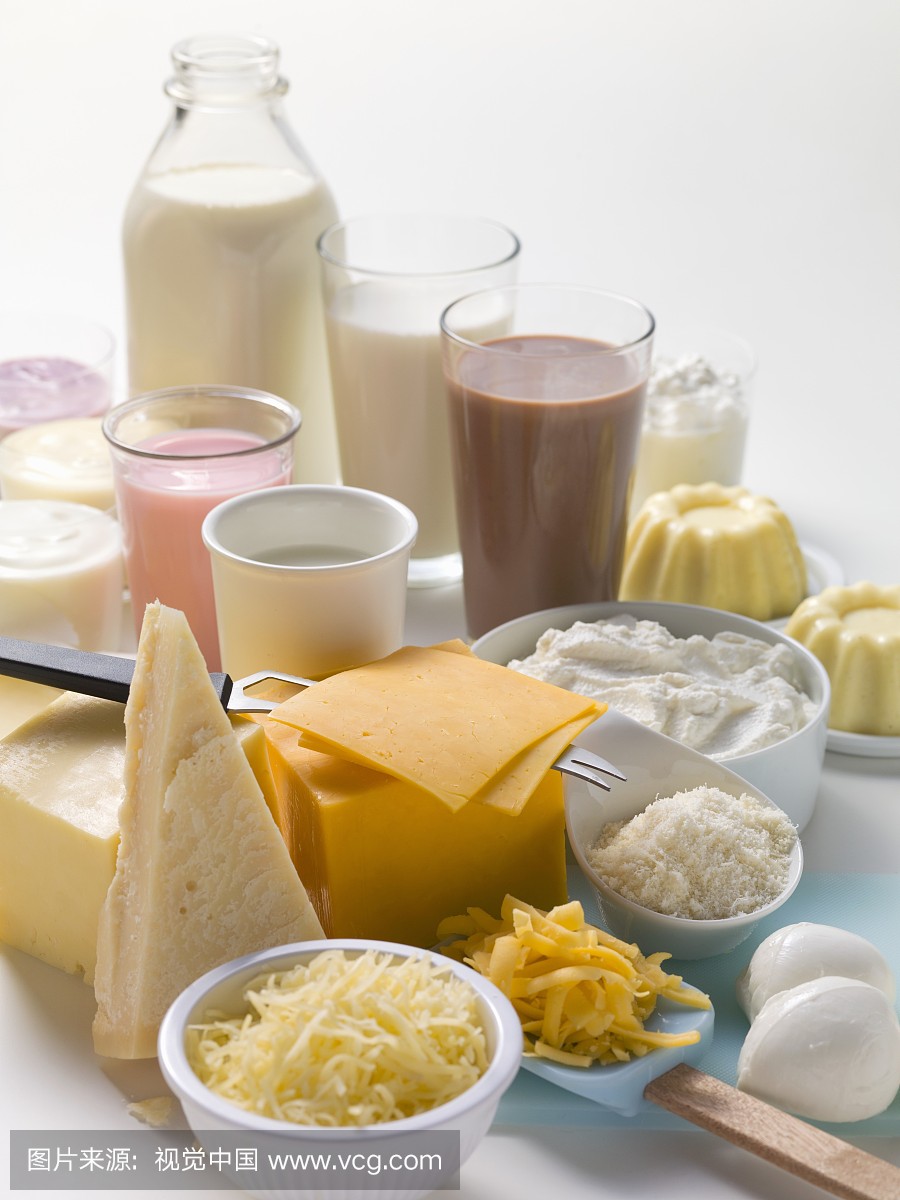 切达干酪,牛奶和石板上有钙这个词