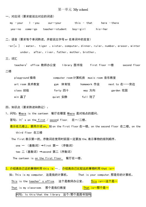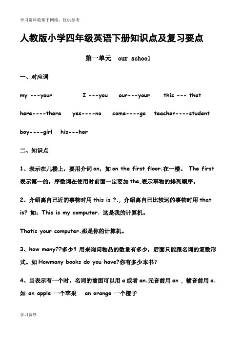 人教版小学四年级英语下册语法知识点