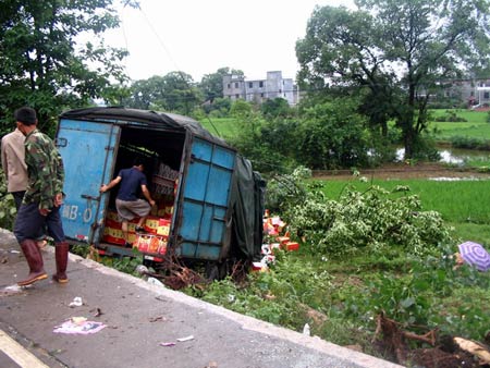 货车司机被撞身亡 村民哄抢车上货物(图)_