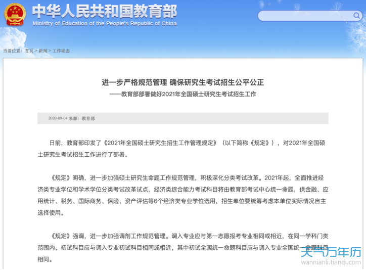 2020年考研时间公布 考试时间安排表一览