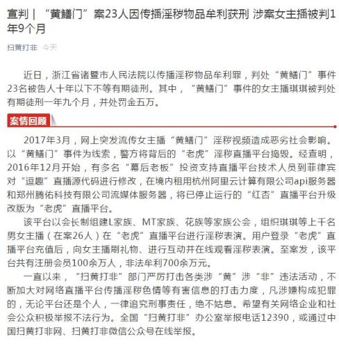 黄鳝门直播平台被团灭了,1000余女主播涉黄