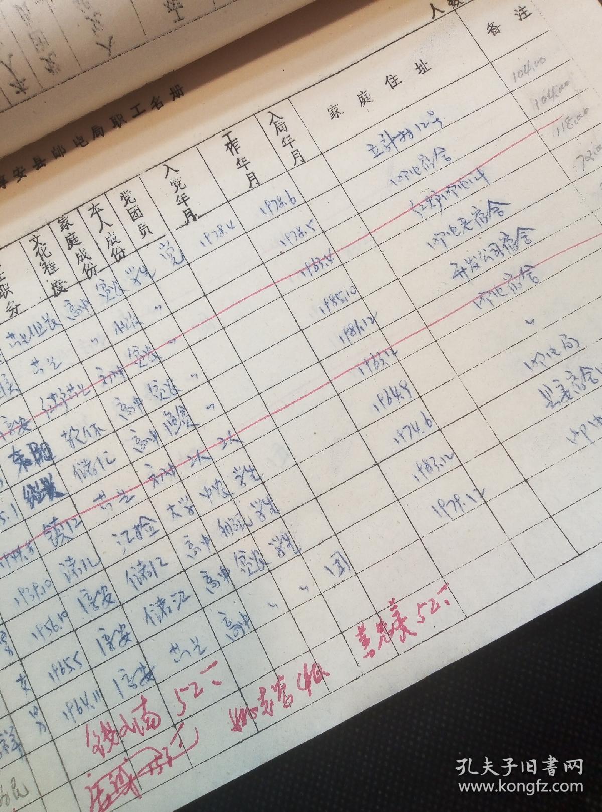 淳安县邮电局职工名册(收 录全县人员性别、出生、籍贯、职务、家庭成分、本人成分、工作、入局年月、家庭地址、备注、党团员、入党等资料)