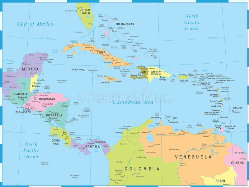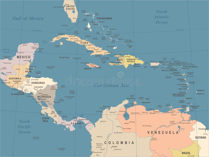 中美洲Cribbean和美洲地图库存例证. 插画
