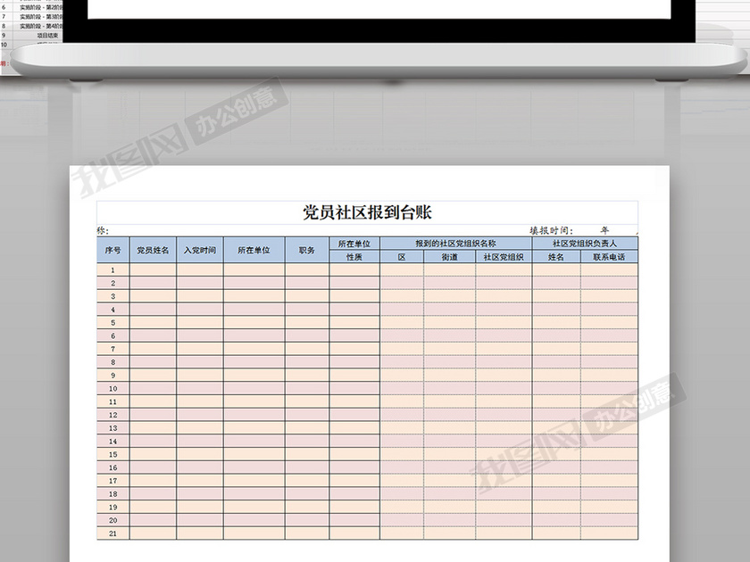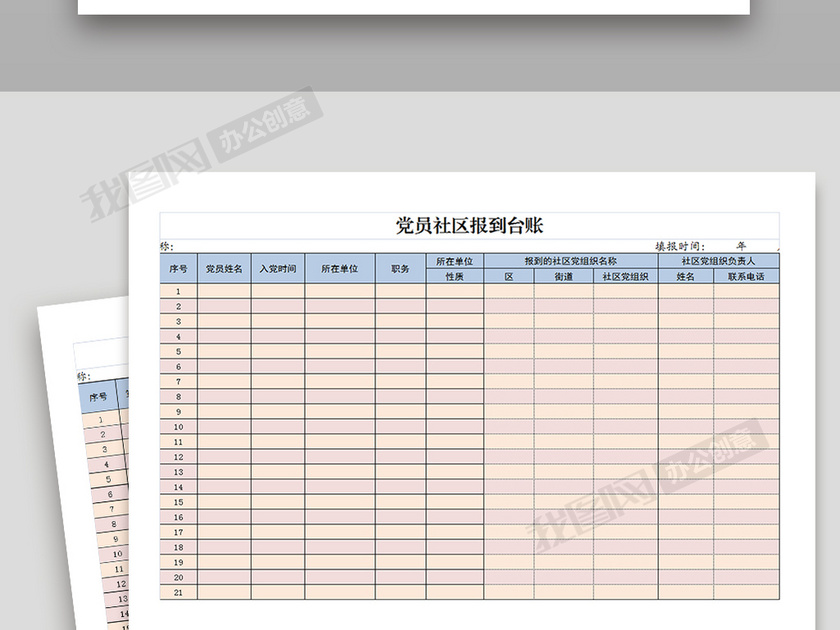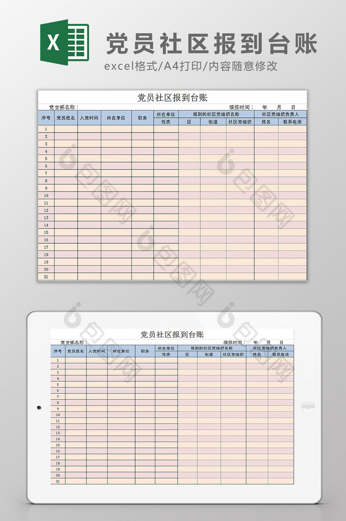 党员社区报到台账Excel模板