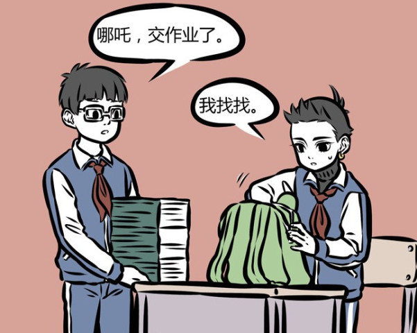 学渣哪吒和学霸红孩儿交作业的区别,