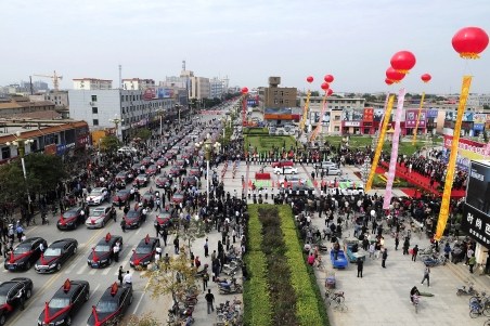 河北献县小屯村百辆奥迪逛县城迎国庆