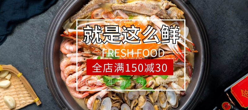清新蓝色电商淘宝生鲜海鲜店铺促销