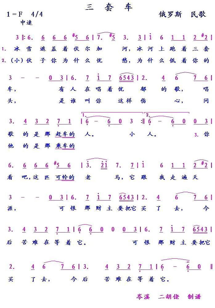 [俄罗斯] 三套车(男声三重唱)歌谱