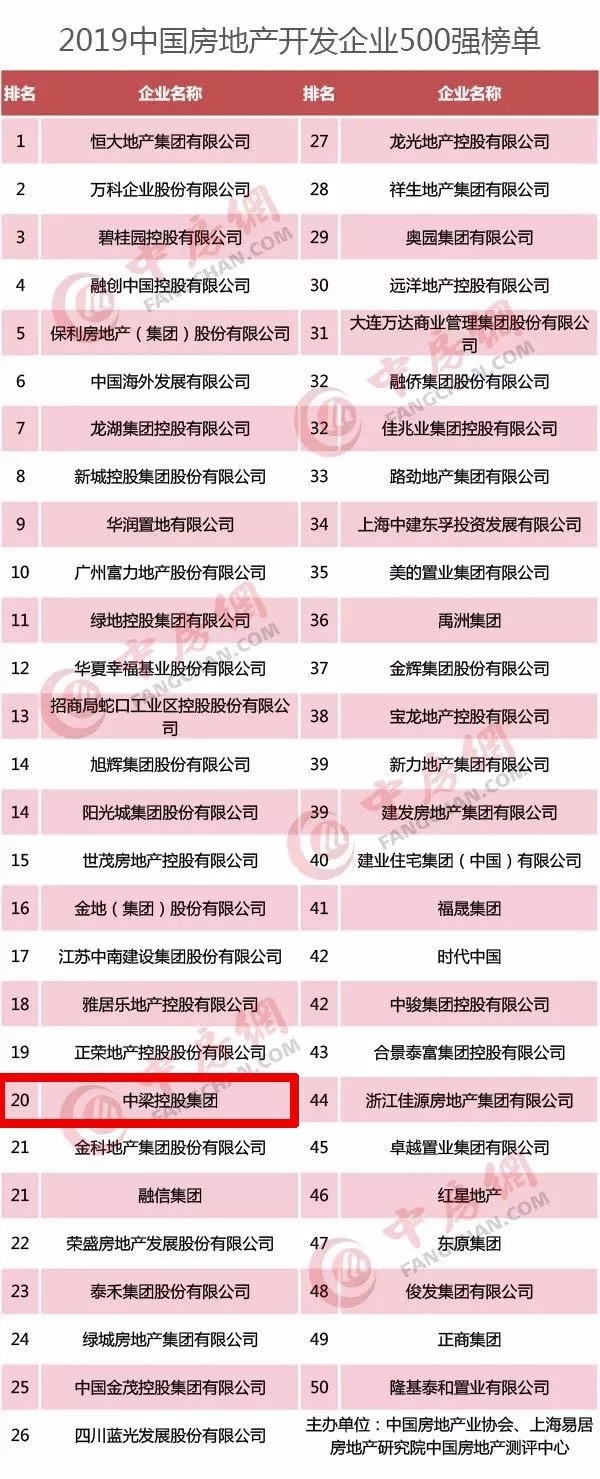 中梁荣膺中国房地产20强,浙系房企排名