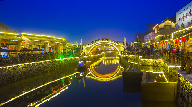 灯火阑珊的北方水乡响堂水镇,颜值和美味