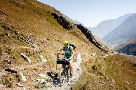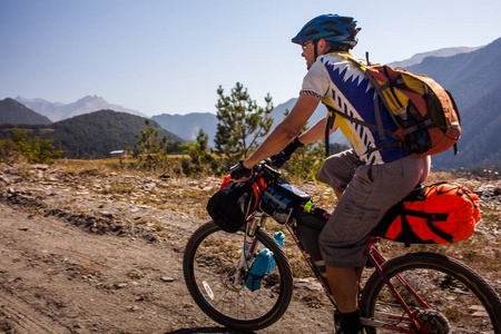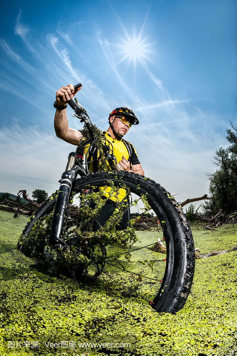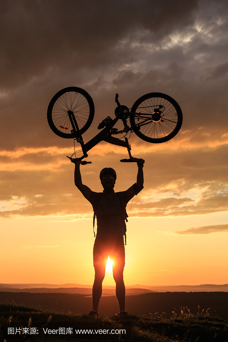 山地车,旅行者,山地自行车运动,垂直画幅,天空