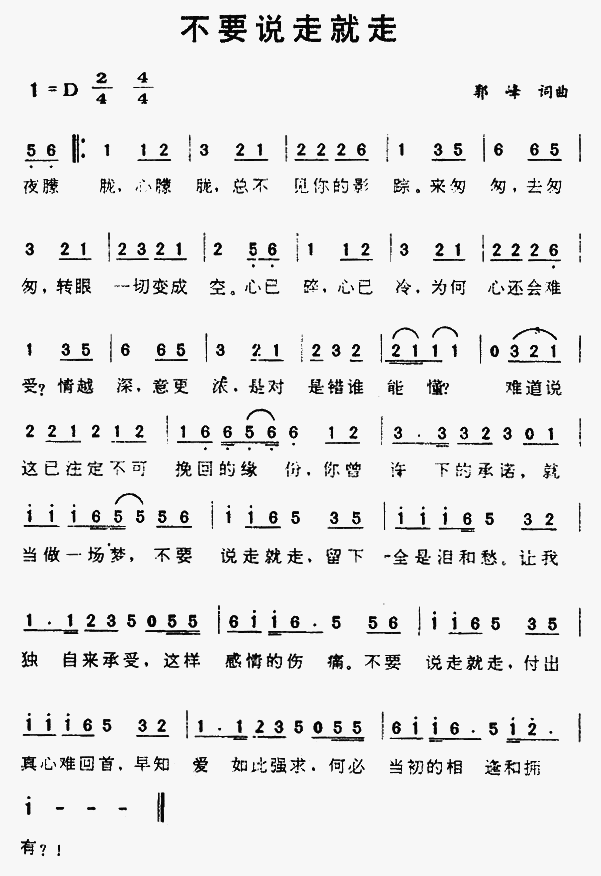 不要说走就走 简谱-虫虫吉他谱免费下载