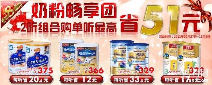 奶粉组合促销单听立省50元-返利网