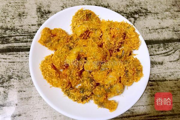 云南宴席传统菜肴,酥炸虾仁,色泽金黄艳丽,