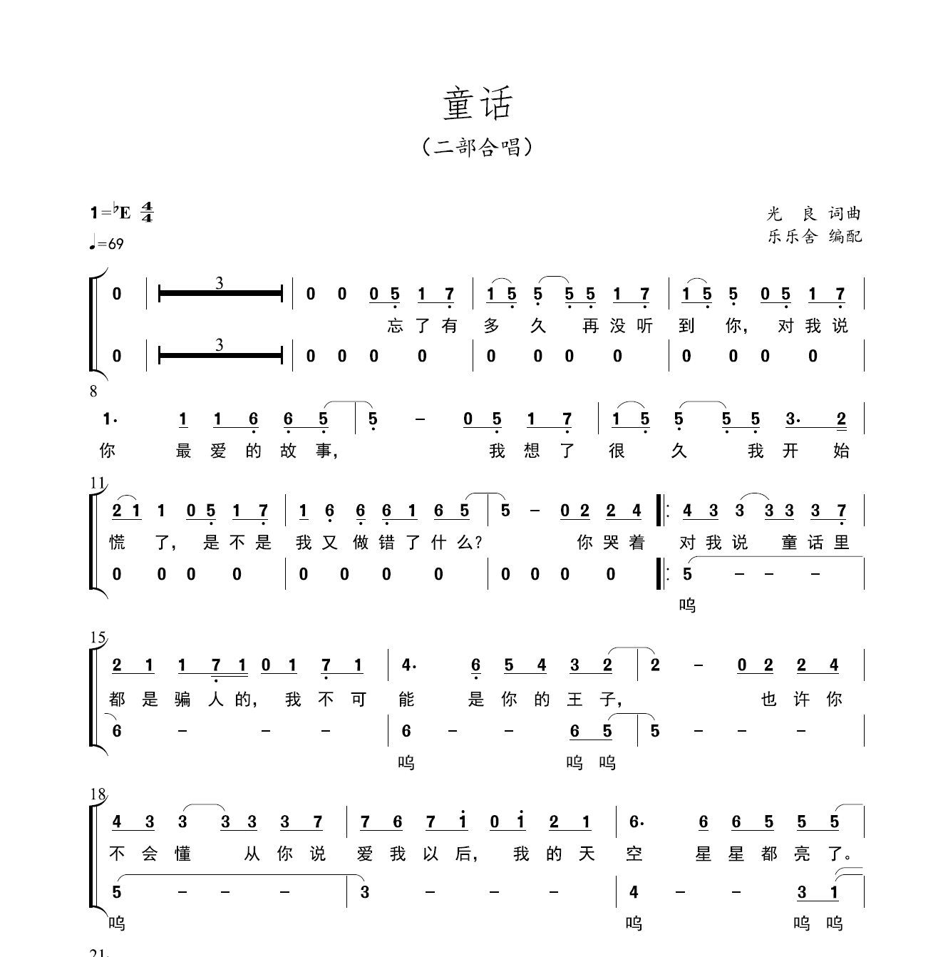 《童话》二声部合唱简谱钢琴伴奏正谱光良女声合唱男女合唱谱