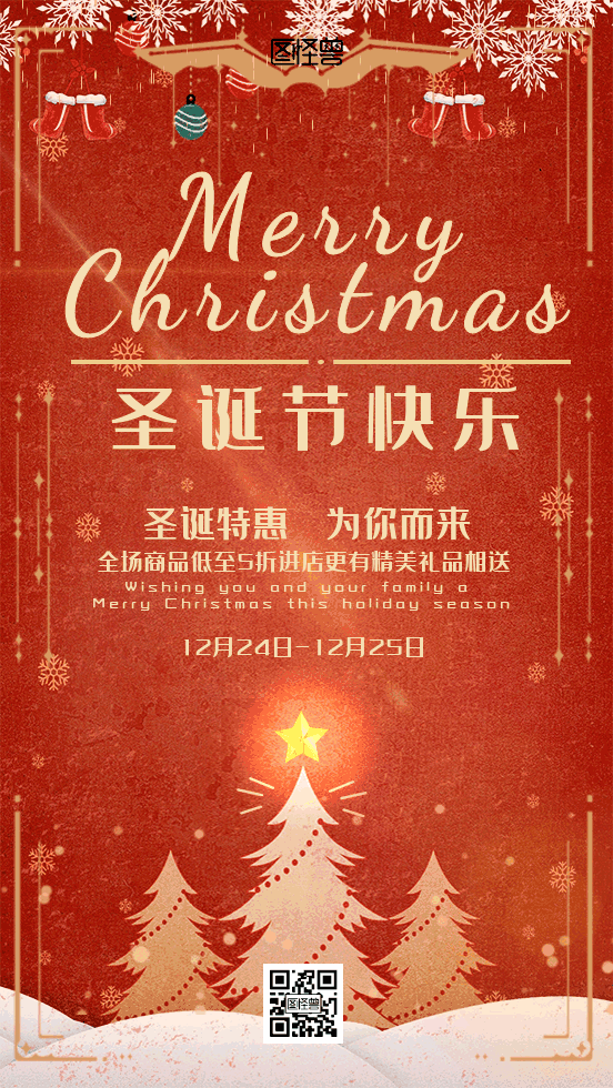 圣诞节平安夜礼物圣诞树动态海报
