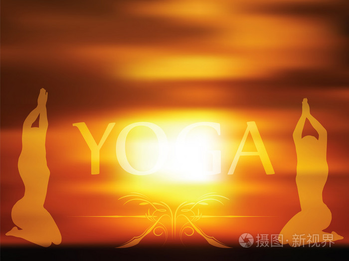 年轻漂亮苗条的女人剪影实践瑜伽健身术对