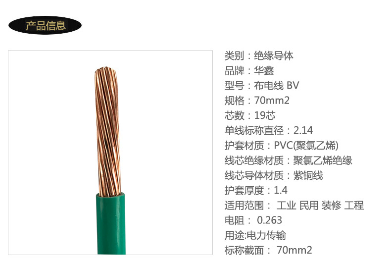 直销电线电缆价格 布电线BV70mm2纯铜芯