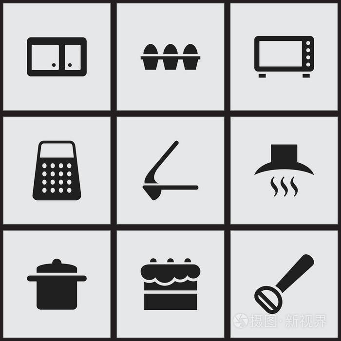 9 可编辑餐图标集。包括符号烤箱、 搅拌器
