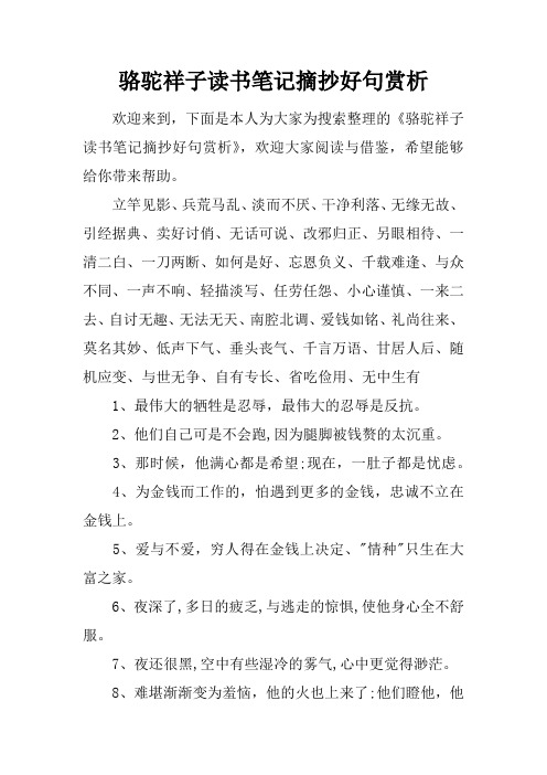 骆驼祥子读书笔记摘抄好词好句及感悟赏析