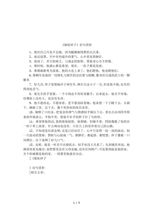 【骆驼祥子好词好句好段赏析】骆驼祥子好