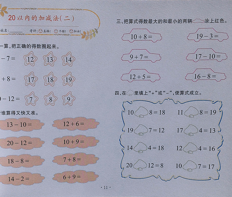 幼儿园大班简单数学加减法