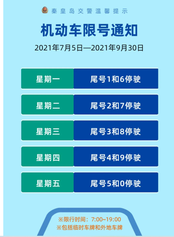 秦皇岛常规限号又要轮换了,北戴河周末也