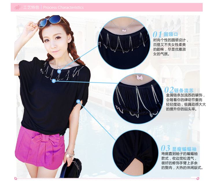 AJA新款 2015夏欧洲站流苏t恤短袖女 圆领