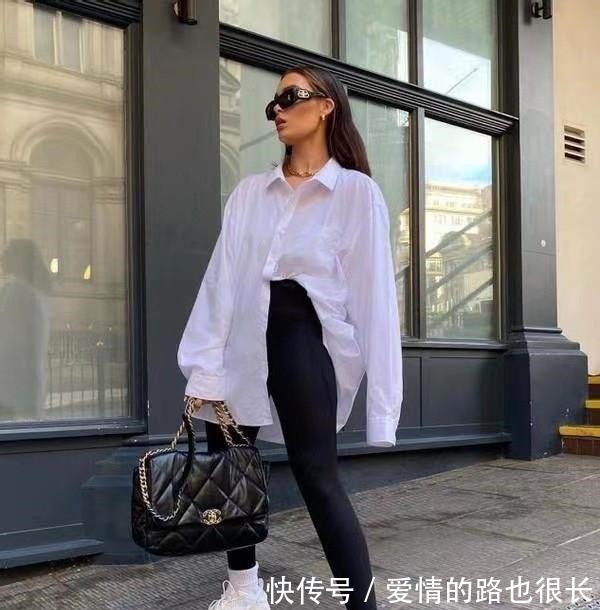 深蓝色衬衫搭配白色西裤,清新干练,又美又飒!
