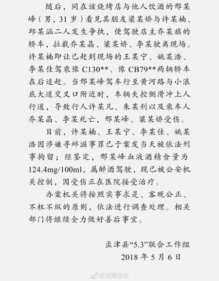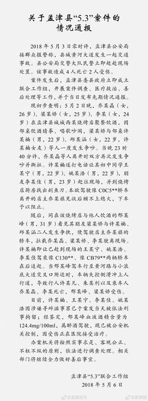 河南孟津车祸致4死2伤 警方已刑拘4人