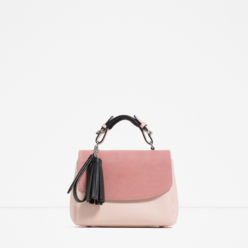 西班牙本土品牌ZARA 女包粉色面料挂带