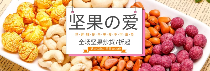 淡色小清新坚果的爱食品电商banner淘宝海报
