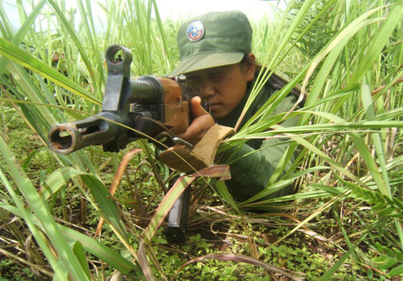 缅甸果敢女兵照曝光 涂伪装迷彩手持突击