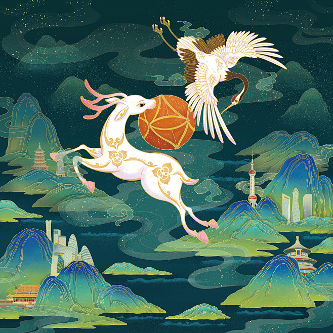 六合同春,天下皆春,瓷器上的传统纹祥,鹤鹿同春
