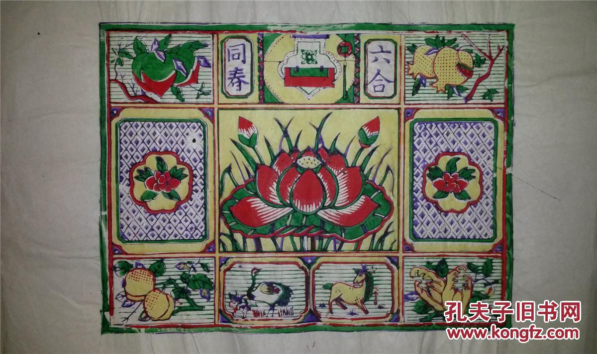 清代版五六十年代印平度宗家庄木刻木版年画版画*六合同春
