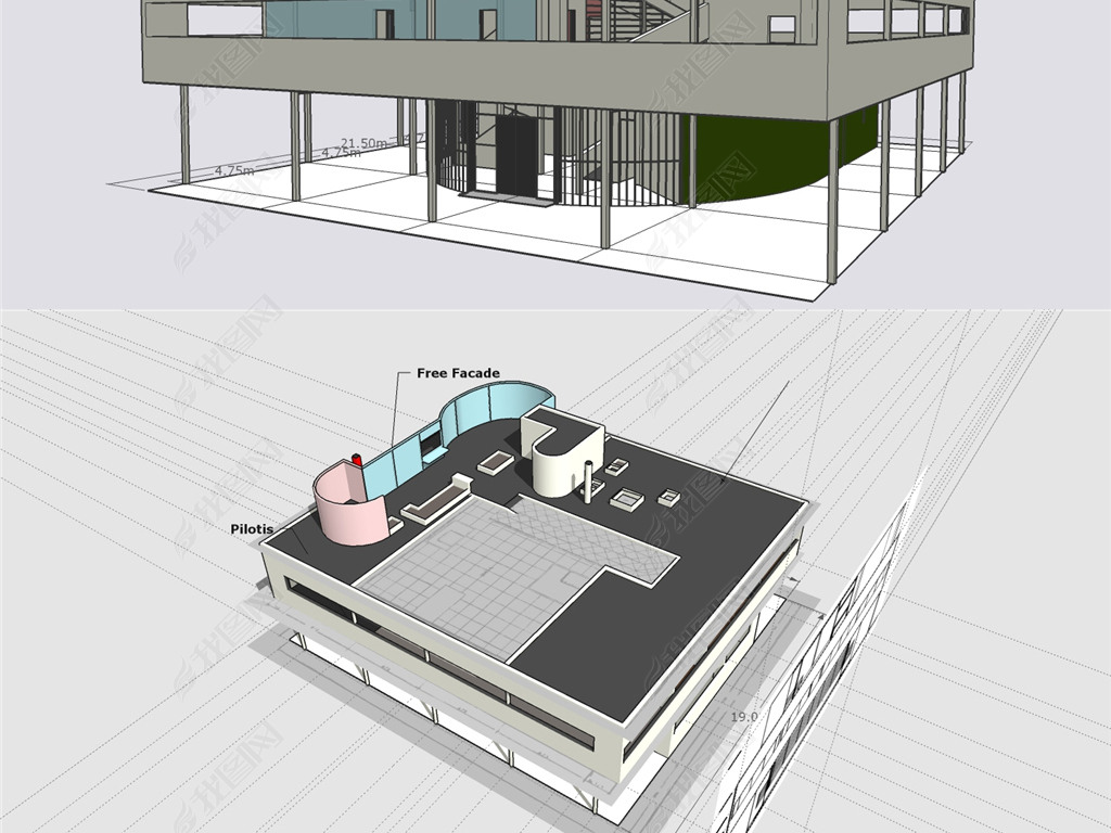 萨伏伊别墅SU模型+CAD图纸+效果图
