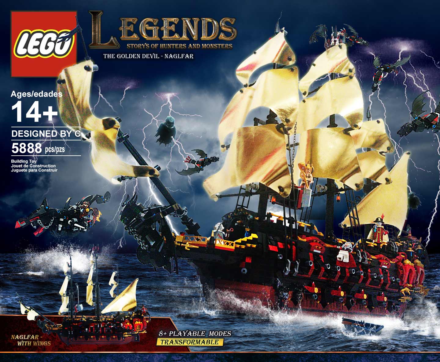 乐高 lego 原创帆船MOC 金色魔鬼-纳吉尔法号 风帆战列舰 非卖品