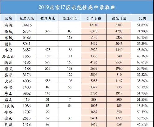 关注丨2019北京17区普通高中录取率和