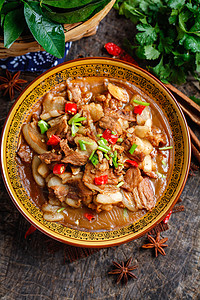 小肉烧红蘑摄影图__传统美食_餐饮美食_